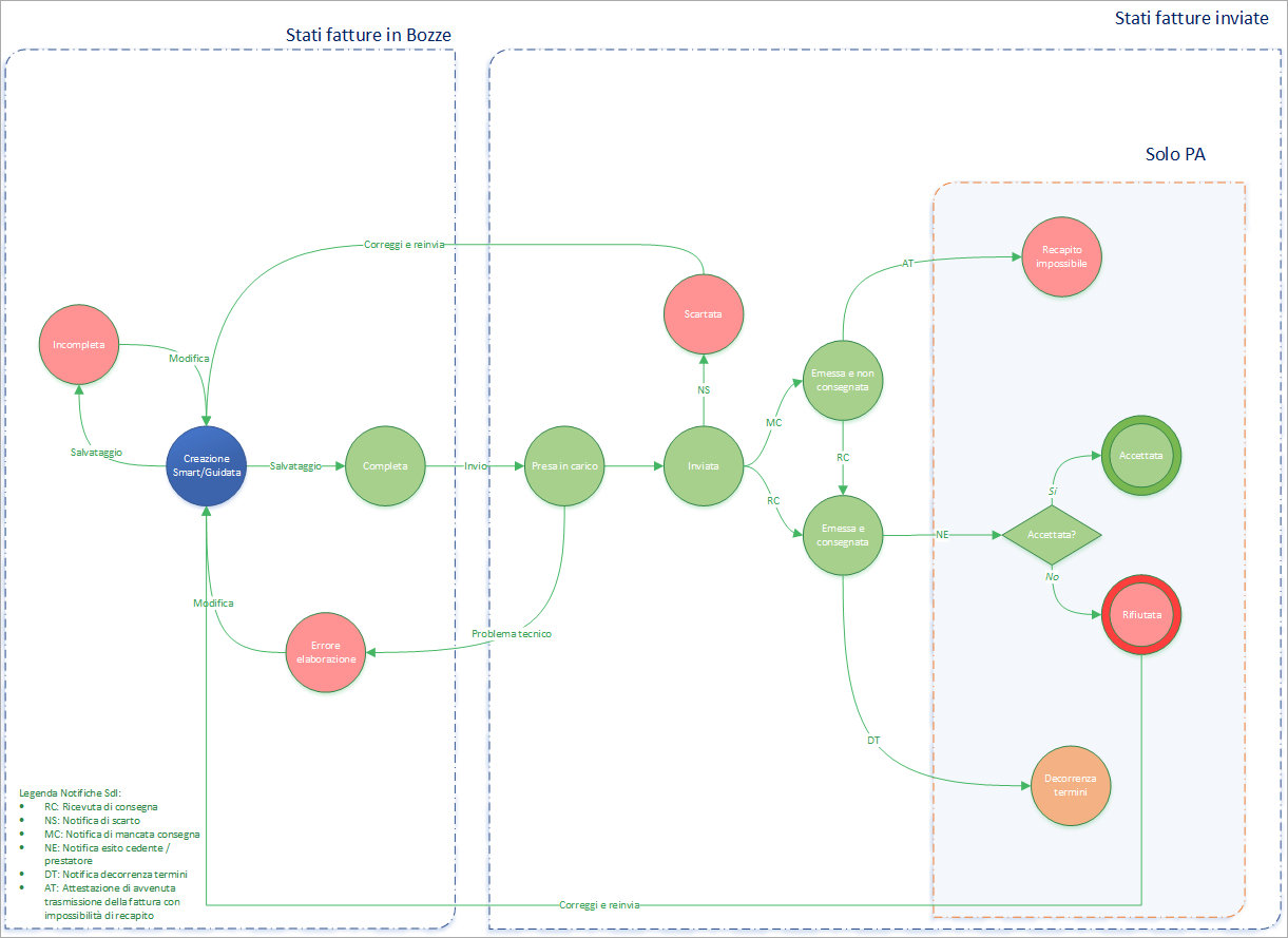 - se l'esito è positivo, la fattura elettronica è validata e inviata la destinatario (privato o PA);