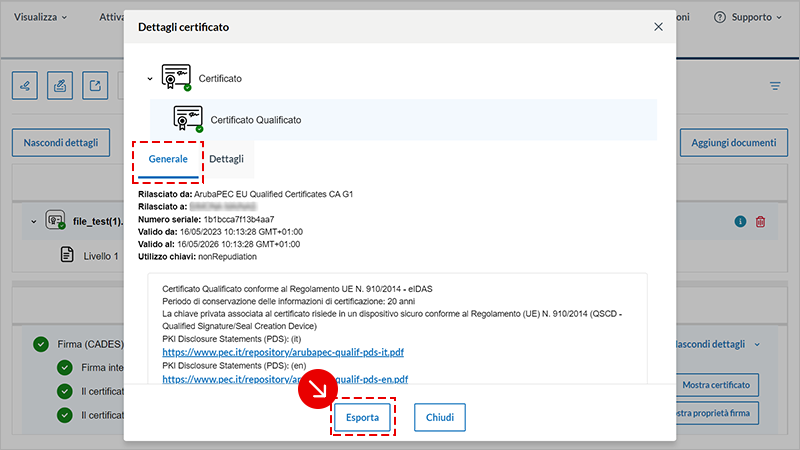 Dettagli Certificato vai su